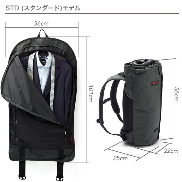 カジュアルなスタイルでスーツなどの持ち運びできるガーメントバックパック●いつも自転車通勤。でも今日は大事な得意先に訪問。スーツを持っていかなきゃならない…●遠方での冠婚葬祭、でも 行き帰りはちょっとリラックスしたい…●旅行先でチョットおしゃれしてディナーを。でも行き帰りはすこしカジュアルに…
