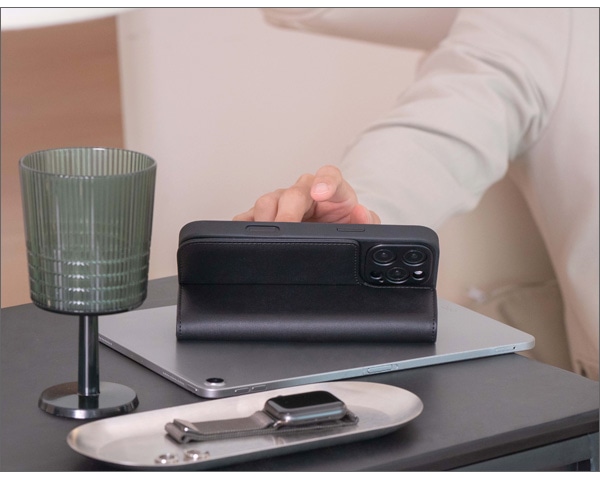 さらに、ウォレット部を折り畳めば動画視聴に便利な角度に置くことも可能です。