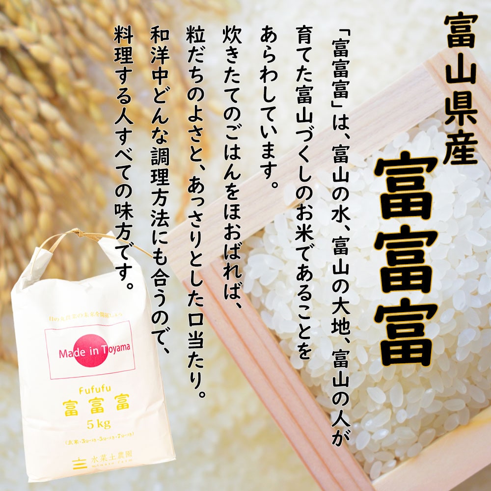 ご飯を食べた人に「ふふふ」と微笑んで幸せな気持ちになってもらいたいという想いも込められている富山のお米富富富。 旨味、粘り、香りがよく全体的なバランスに優れているお米で、和洋中どんな料理にも合うため、料理する人すべての味方です。 出荷当日に精米します!1番おいしい状態で食卓へお届けするための絶対条件ですから。 日本の食卓に、もっと感動と笑顔を。 秋田 水菜土農園