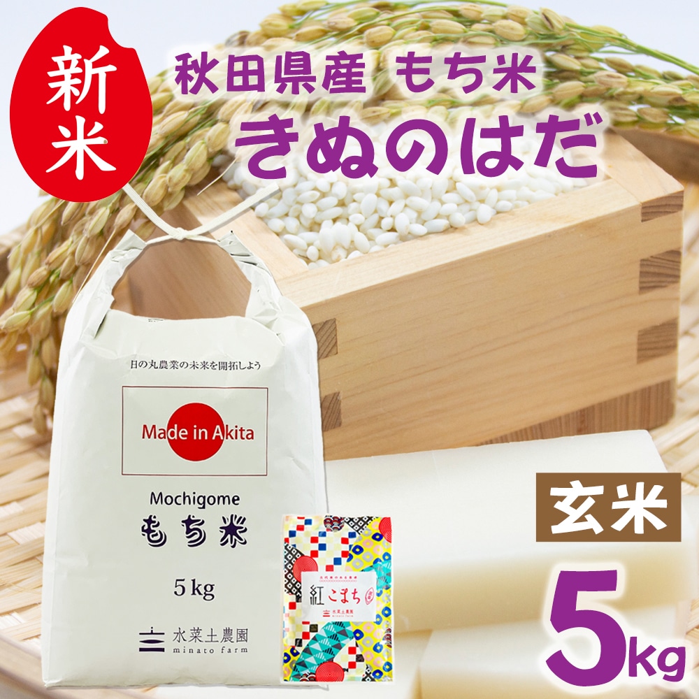 新米 秋田県産 きぬのはだ もち米 玄米 5kg 令和7年産 古代米お試し袋付き