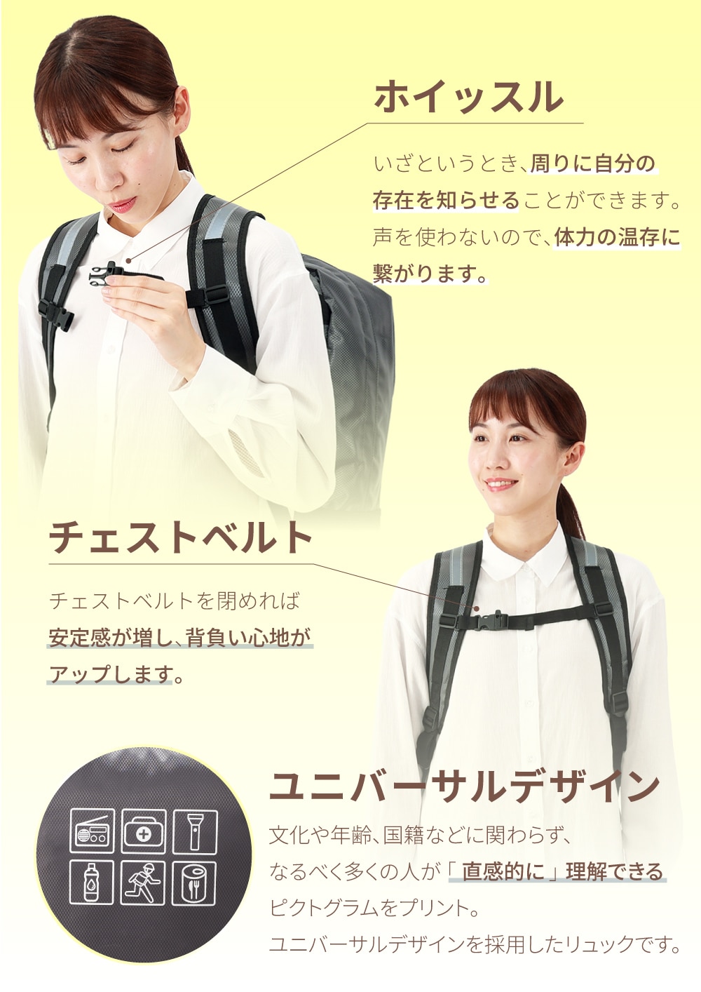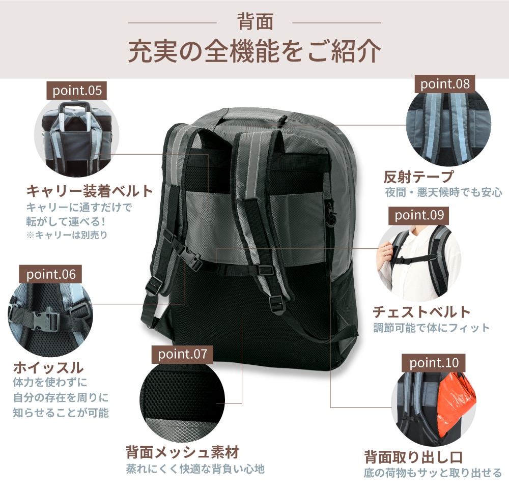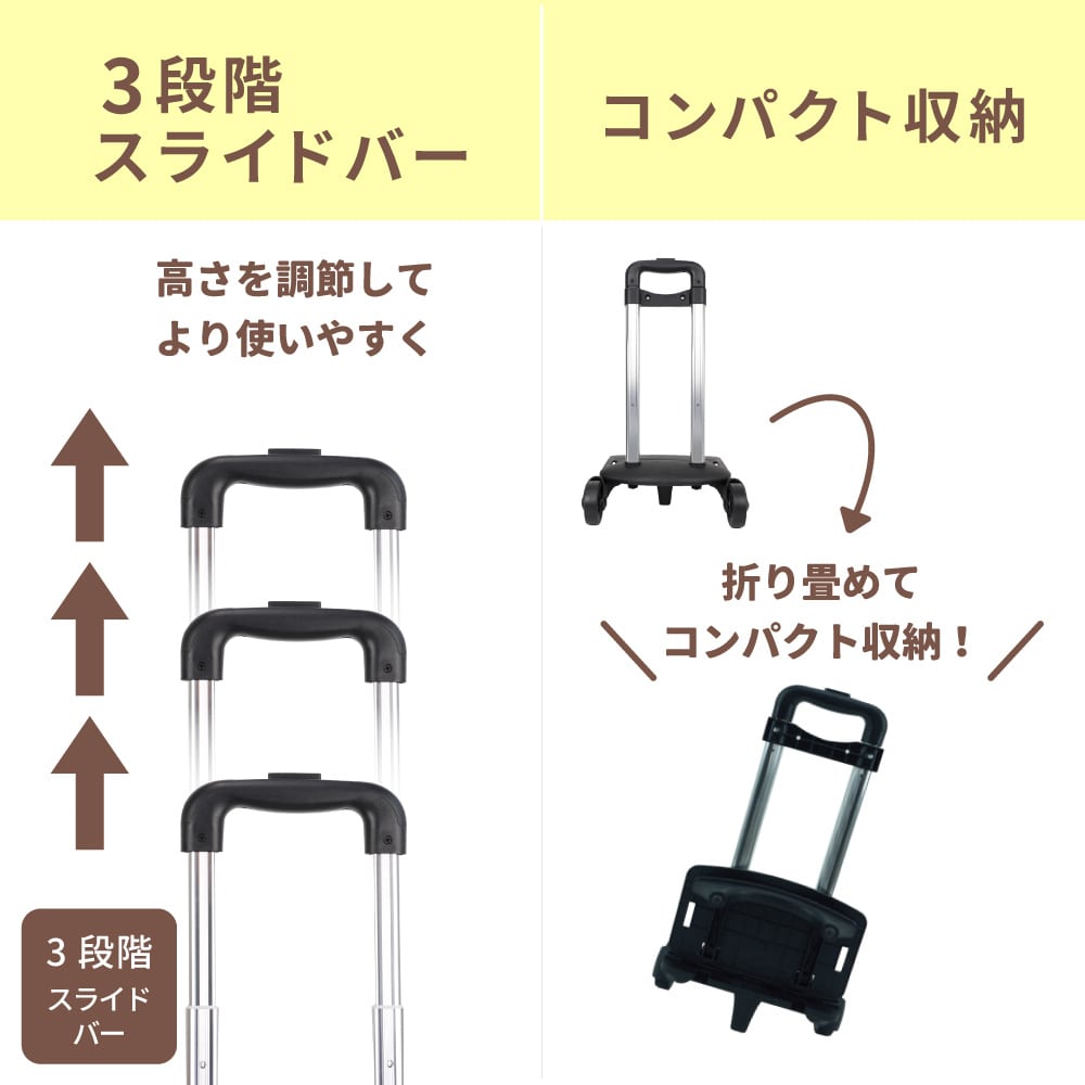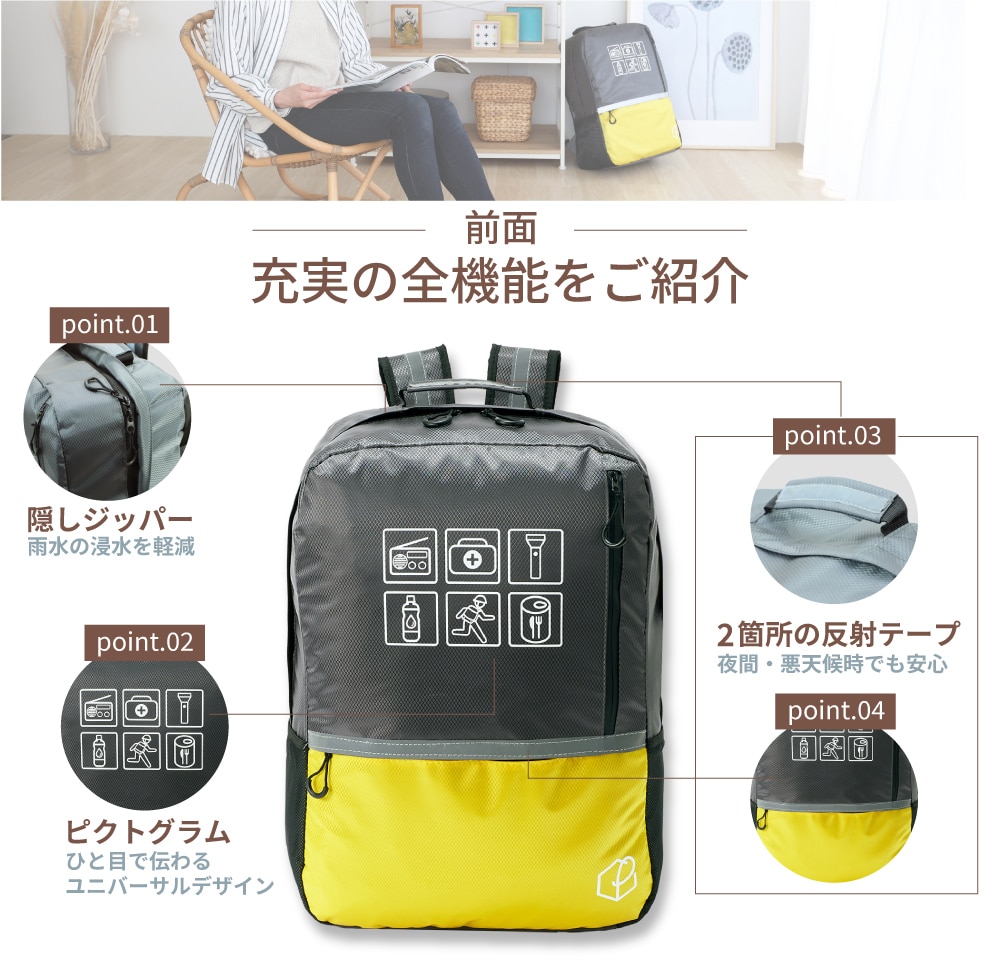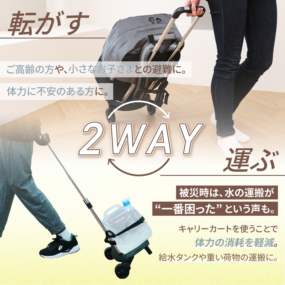 防災リュック大容量47L キャリー対応!軽量で丈夫な防災リュックです。 ■サイズ:(約)横450×縦550×マチ190mm ■カラー:レッド・ブルー・イエロー ■キャリーカート(別売り) 折りたたみ式 固定バンド付き