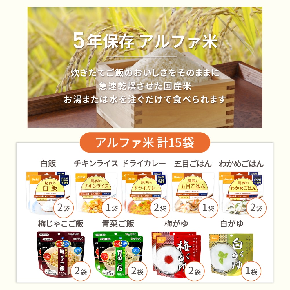 ■袋入非常食は、お湯か水で簡単に作ることができます。 ■パンの缶詰は、開けるだけですぐに食べられます。 ■非常食はどれも食器不要で、手が汚れていても安心して食べられる工夫がされた商品です。 ■セット内容品は出荷時期によって同等品に変更になる可能性がございます。 ■保存期間:【保存食】製造より5年保存(賞味期限4年半以上保証) 【保存水】製造より10年保存の商品です。(賞味期限9年半以上保証) ■製造国:日本