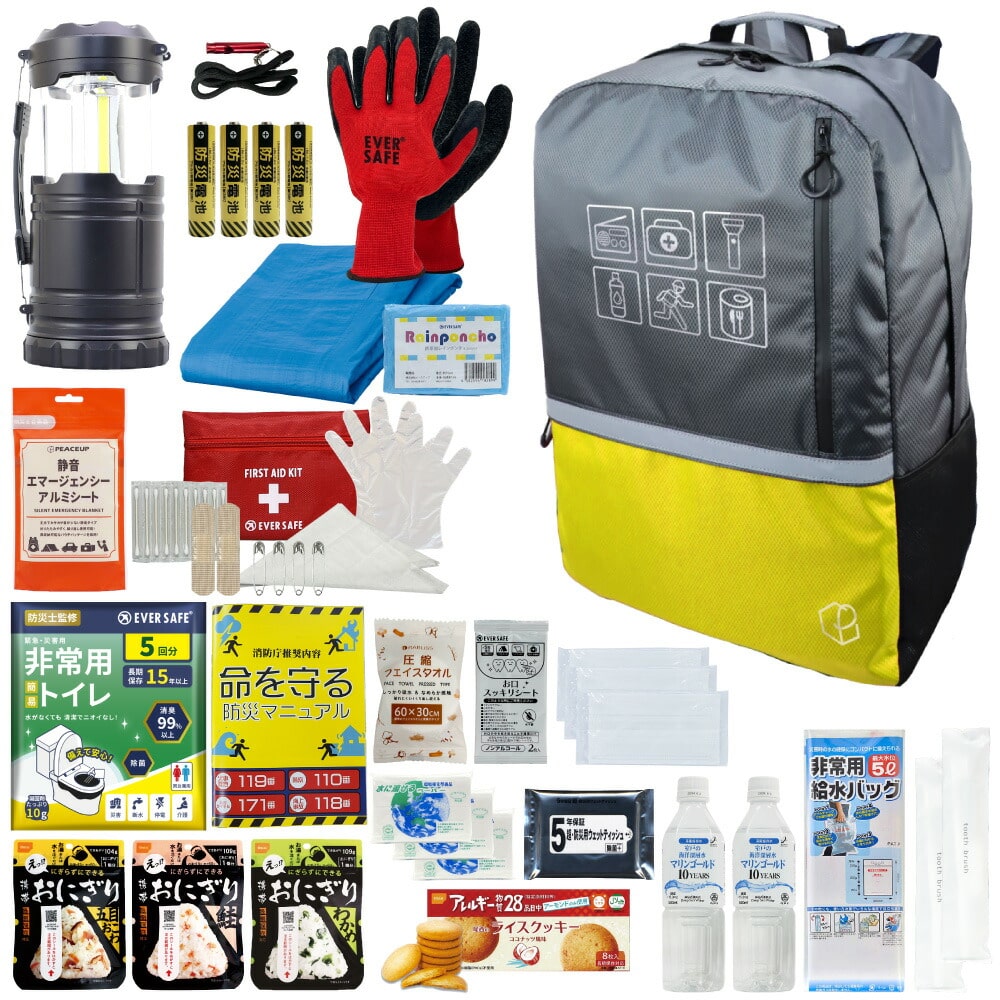 防災セット 1人用 40Lビッグリュック イエロー 防災士監修 防災グッズ 大容量 非常食 お菓子 保存水 ランタン 非常用トイレ 救急セット 懐中電灯 衛生用品 地震対策 警戒レベル3 PEACEUP L3BR01