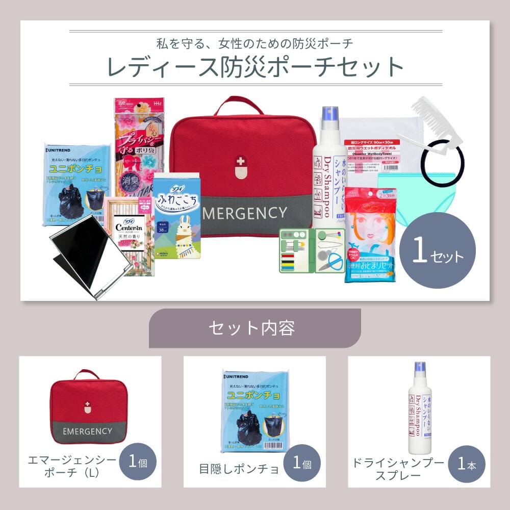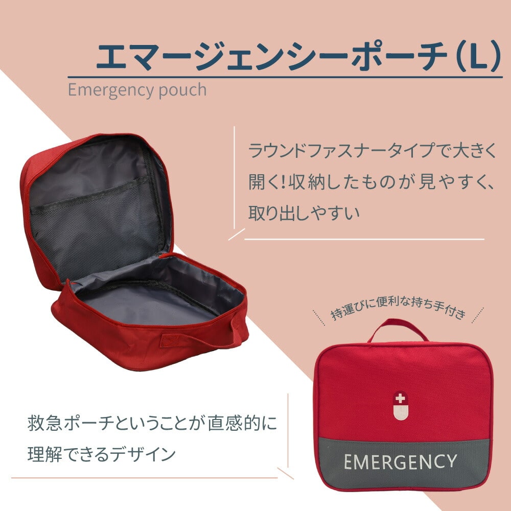 ●エマージェンシーポーチL (カラー:レッド/ピンク/グレー)※カラーは選べません 【関連ワード】 レディース 女性用 女性専用 サニタリー 衛生グッズ 防災ポーチ かわいい おしゃれ 非常用持ち出し袋 避難所 災害 地震 旅行 お泊りセット ギフト 1人用 新生活 1人暮らし