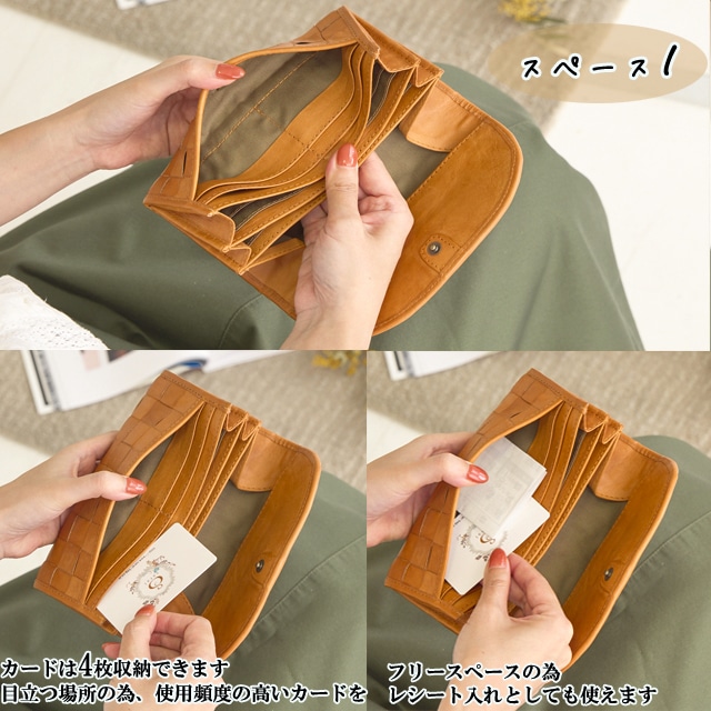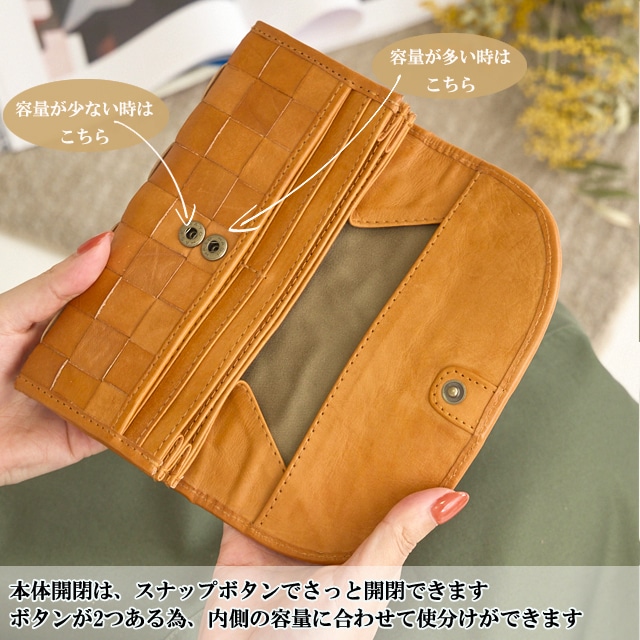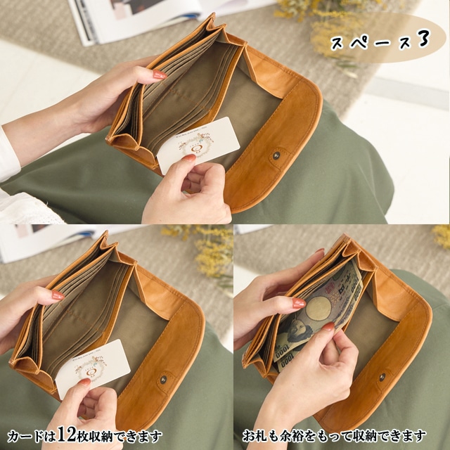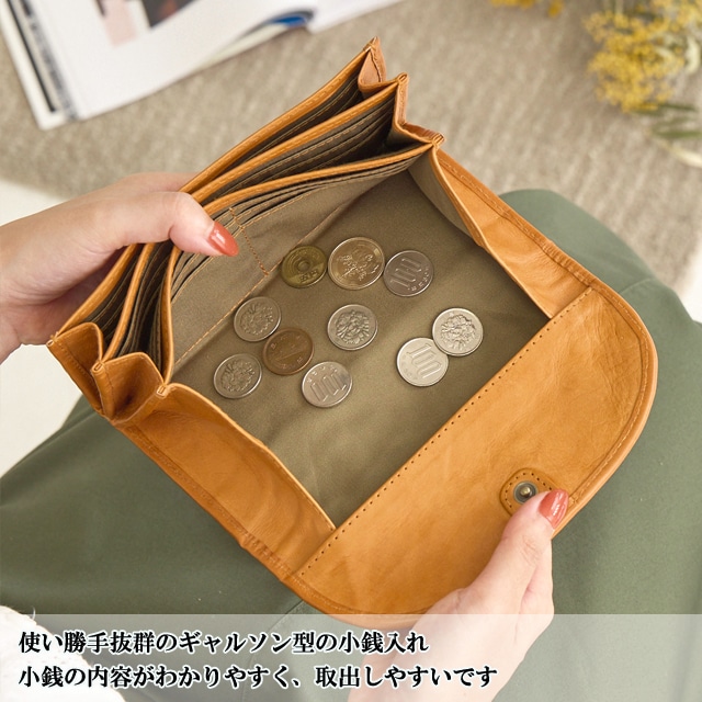 素材 牛革 サイズ・容量 幅:19cm 高さ:10cm マチ:2cm 開閉:スナップボタン 内側:お札入れ×2 小銭入れ×1 カード入れ×34 フリーポケット×1 外側:オープンポケット×1 重さ:約220g カラー ブラウン 生産国 インドネシア 特徴 おすすめ!ズッケロの定番人気シリーズ ズッケロ ムック本 掲載シリーズ♪ 宝島社 雑誌 リンネル掲載シリーズ♪ 職人の手により、1枚ずつ手で染めては天日で 乾かすなどの工程を、何度も繰り返して 仕上げたカウレザーを使用しています。 ひと目で本革とわかるナチュラルな風合い 素朴な匂いや革本来の色の濃淡が、使い込む程に 味わい深く変化し、持つ人に馴染んくる為 愛着の湧くオリジナル財布になります。 くったり柔らかく、表情豊かになる本牛革 ならではの、経年変化をお楽しみ下さい。 大容量収納でき、使いやすい 仕様に仕上げました。 またカード入れが34箇所とたくさん入る 仕様で機能性にも優れています。 内側の小銭入れはあえてファスナーを つけていない為、お財布を開けた瞬間に 小銭の内容が確認でき、出しやすい ボックス型の小銭入れに。 またファスナーがない為、比較的薄型に 仕上がっています。 サイズ感は女性の手にもすっぽり 収まる薄いスリムなサイズです。 また誕生日や母の日等、記念日のプレゼントにも よく選ばれています。