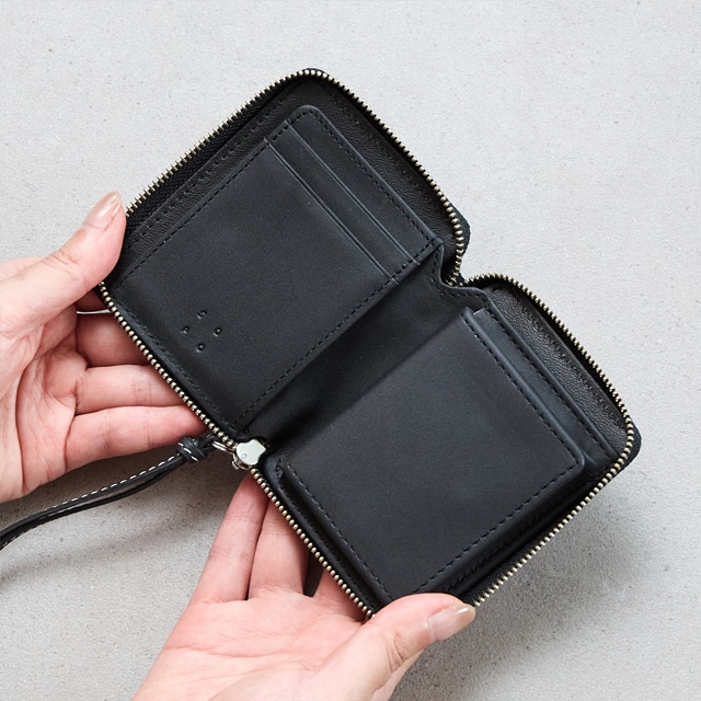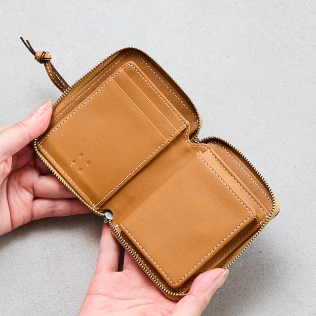 ROUND ZIP PURSE-DEG SO38 Made in japan MEN’S NON-NO WEB 掲載シリーズ フランスから届いたレザーを使用し 日本のお財布専門工場で丁寧に作りました。 コンパクトなサイズ感にこだわり緻密に 設計されたお財布です。 ↓おすすめポイント↓ ●女性の手にも綺麗に収まる コンパクトサイズは、小さめのバッグや ポケットにもすっきり収納、 重さも約85gと超軽量に仕上がりました! ●小銭入れは大きく開き 取り出しやすい、計算された設計に カード入れは5箇所 お札入れは片方をオープンにする事で 取出しやすくしました ●長年歴史のある日本のお財布専門工場で 技術を用いて作った丁寧な作り ●キメが細かく滑らかな手触りが特徴で 耐水性、耐久性に優れた革は、比較的 綺麗な状態を保ちながら長くお使いいただけます ●プレゼントとしてもぴったりな SOPOオリジナルの箱と革の証明書付を つけて、お送りします 本体には、フランス最古のタンナー 「DEGERMANN社」(現HAAS社)の カーフレザーを使用しています。 独自のレシピによる製法を守り続けながら 世界の名だたるメゾンに素材を 提供し続けています。 コンビ鞣しによって仕上げられた革は クローム由来の耐熱性と発色性タンニン由来の コシ感も持ち合わせています。 タンニン鞣しレザーより緩やかで クローム鞣しレザーより豊かな エイジングを楽しんでいただけます。 良質な素材ならではのキメの細かさや 滑らかな手触りに加え耐水性・耐アレルギー性を 備えているのも魅力です。 世界的トップメゾンとapplewatchのバンドにも 使用されています。 人の肌に長時間触れるものとして 傷みにくく、かつ美しい状態で永く 使える事を前提に作られた素材です。 イタリア「PRYM社」の小気味良い ホックの質感もアクセントになっています。 小銭入れ・・ 大きく開く為、内側の内容が見やすく 取出しやすい人気の仕様です。 お札入れ・・ 片側が空いている設計の為大きく 開き出し入れがしやすいです。 カード入れ・・ 全部で5箇所あります。 個人情報が記載したカードは カード入れの裏・小銭入れの 裏に入れると見えづらいです。 メンズ・レディース問わず ユニセックスで使えるアイテムになっており 記念日やお誕生日のプレゼントにも最適です。 プレゼントにもぴったりなブランドロゴを 印字した、化粧箱に入れてお届けします。 ブランドのアテンション札と 革の証明書もついています。 ・モニターの発色具合によって実際のものと色が異なって見える場合があります。 Material ・Calf leather(仏:Tanneries DEGERMANN:Zermatt) ・Size 10×8.5×2(cm) ・カード入れ×5・お札入れ×1・小銭入れ×1 ・重さ 約85g [ MADE IN JAPAN ]