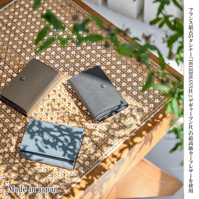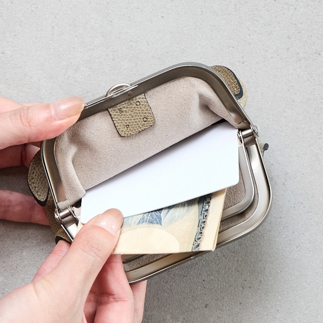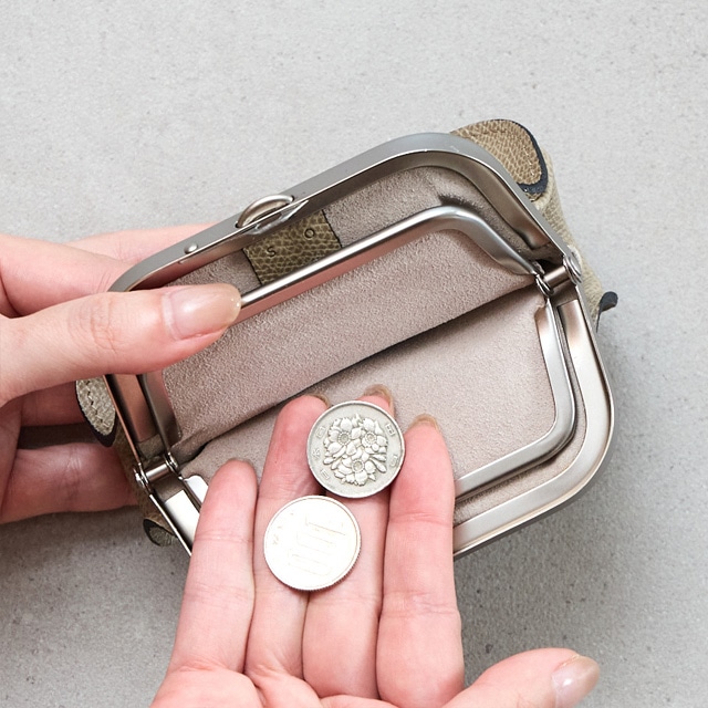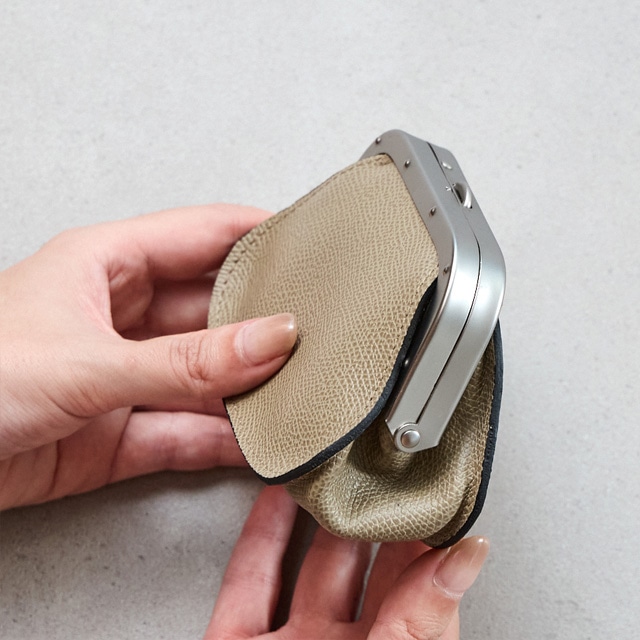GAMA MINI PURSE-DEG/VAL SO53 Made in japan フランスから届いたレザーを使用し 日本のお財布専門工場で丁寧に作りました。 他にはないオリジナルのがま口がポイントです。 ↓おすすめポイント↓ ●他にはない唯一無二の SOPOオリジナルがま口を採用 重厚感のある雰囲気ですが 重さは約120gと軽量に仕上がりました! ●小銭入れとしてはもちろん カードや二つ折りにしたカードも収納可 アクセサリー類を入れる小物入れとしても ご使用いただけます。 ●長年歴史のある日本のお財布専門工場で 技術を用いて作った丁寧な作り ●小傷が気になるお財布ですが 繊細なシボ感が特徴で、小傷が目立ちにくく 綺麗な状態で保ったままお使いいただけます ●プレゼントとしてもぴったりな SOPOオリジナルの箱と革の証明書付を つけて、お送りします 本体には、フランス最古のタンナー 「DEGERMANN社」(現HAAS社)の カーフレザーを使用しています。 独自のレシピによる製法を守り続けながら 世界の名だたるメゾンに素材を 提供し続けています。 少しコシのあるカーフレザーに エンボス加工(型押し)を施しました。 繊細な色の濃淡が特徴で、表情豊かな雰囲気に。 安価なレザーでは 表現出来ない高級感が魅力です。 型押しレザーは表面が丈夫で キズが目立ちにくいのも嬉しい特長です。 その為お使いいただく程に小傷が 気になるお財布ですが比較的綺麗な 状態を保ちつつご愛用いただけます。 ダイキャストで成形した金具は軽量で 強度もあり艶消しのシルバー色で仕上げました。 革を裁断し、オリジナルの口金に ハメ込む作業も技術を必要とし一点一点 国内の職人がミリ単位で調節しながら 仕上げています。 お財布使いから、小物入れにも他にはない 愛らしいフォルムが魅力です。 メンズ・レディース問わず ユニセックスで使えるアイテムになっており 記念日やお誕生日のプレゼントにも最適です。 プレゼントにもぴったりなブランドロゴを 印字した、化粧箱に入れてお届けします。 ブランドのアテンション札と 革の証明書もついています。 ・モニターの発色具合によって実際のものと色が異なって見える場合があります。 Material ・Calf leather(仏:Tanneries DEGERMANN:Dauphin) ・8×12×5.5(cm) ・Coin...and more(free to use) [ MADE IN JAPAN ]