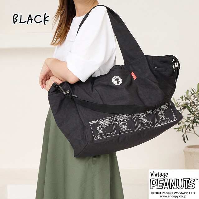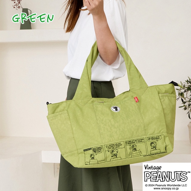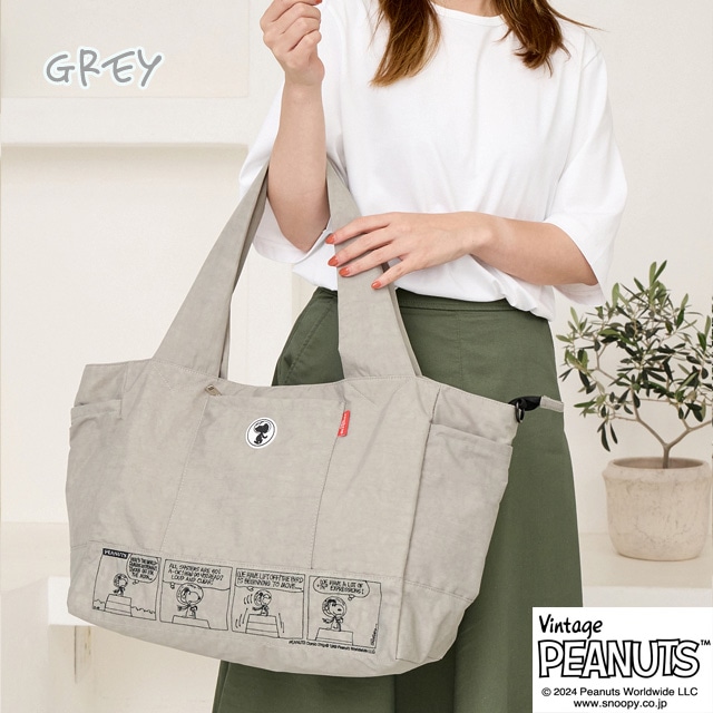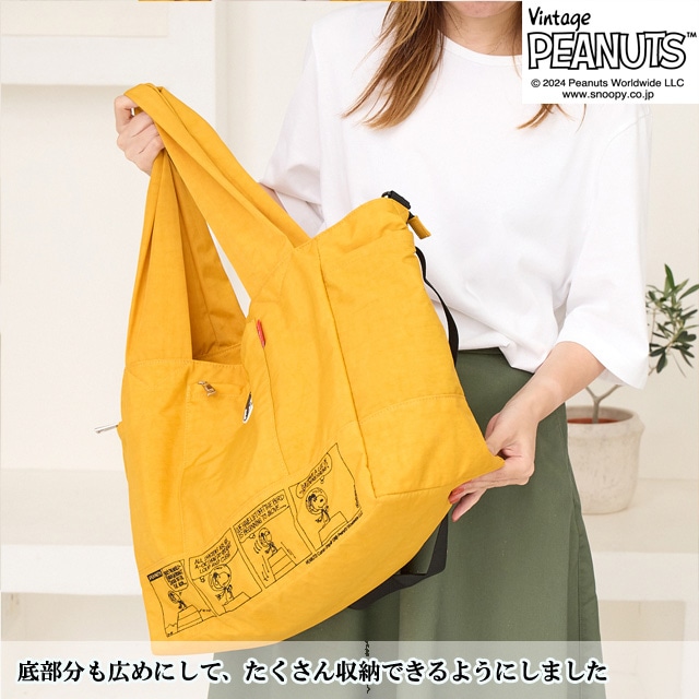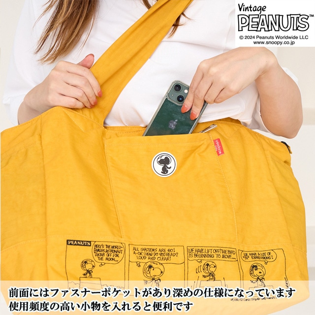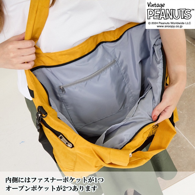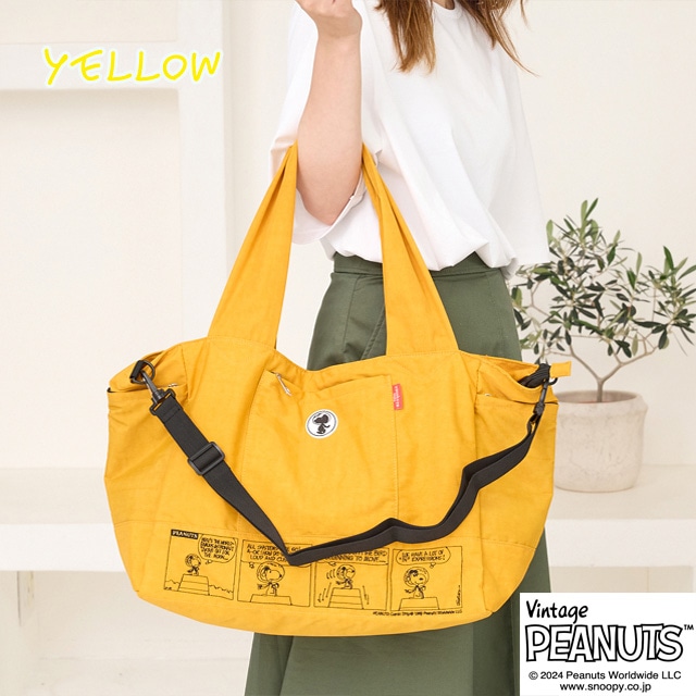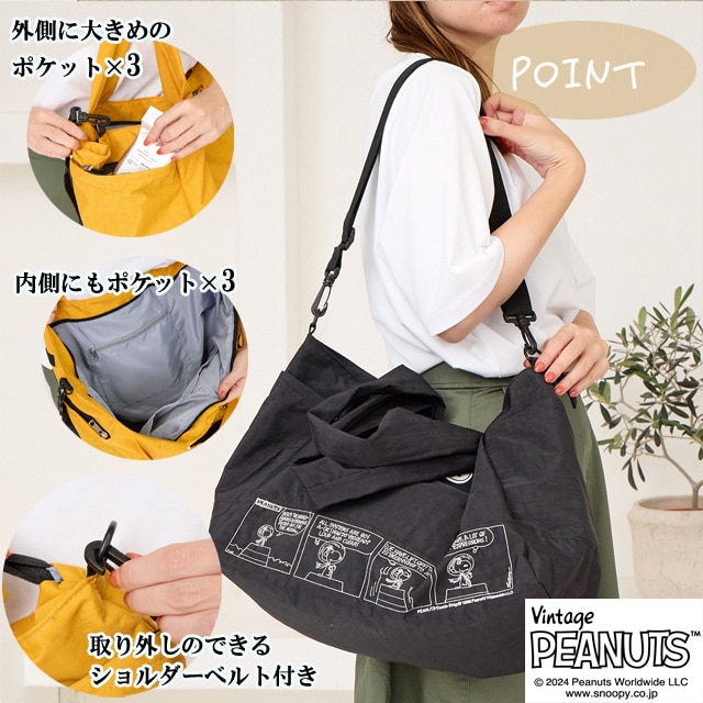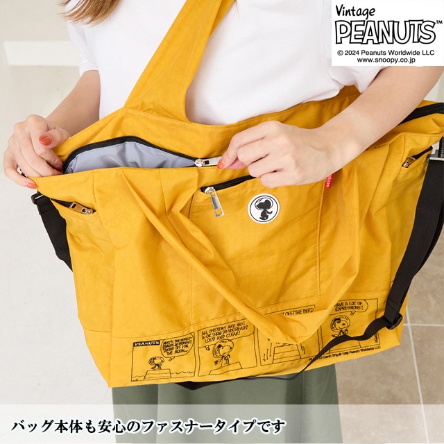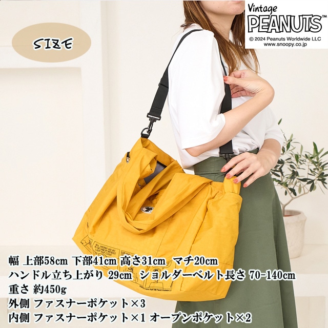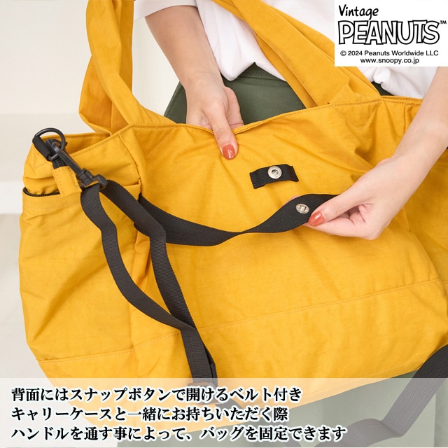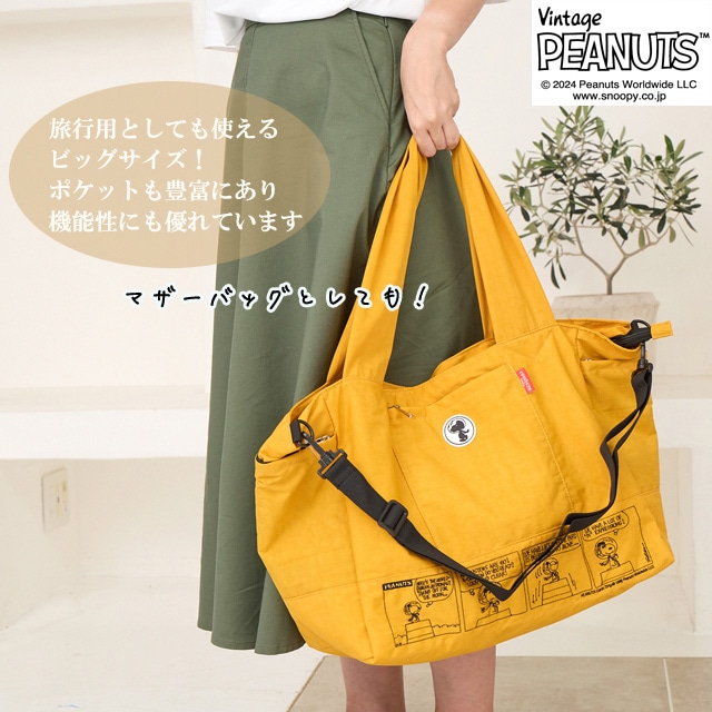 【スヌーピー好きな方におすすめしたい 大人の女性が持てるキャラクターバッグ】 【旅行バッグとしても使える大容量サイズ】 荷物の多い方でも 安心して使える大きめのサイズになっており マザーバッグ・ボストンバッグとしても使えます。 【ポケット豊富で機能性も◎】 外側には3つファスナーポケットが ある機能性に優れた仕様になっている為 使用頻度の高い小物類を入れて いただくとすぐに取り出せ便利です。 内側にもポケットが3つあり、整理しながら 収納できます。 【使い勝手の良い2wayスタイル】 手持ちはとしてもちろん、ショルダーベルトを 調節する事で、肩掛け・ななめ掛けと 2way・3way使いができます。 【スーツケースと一体化にできる仕様】 また背面にはスーツケースの取っ手を 通せる仕様になっており、旅行用としても 使えるデザインに仕上げました。 クラシックなスヌーピーのデザインは 大人の女性でも違和感なくお持ちいただける キャラクターバッグになっており 世代や流行りにとらわれない為 誕生日や記念日のプレゼントにもぴったりです。 また機能性に優れた仕様は、マザーバッグとして お使いの方も多く、出張や、アウトドア キャンプにも耐えうる大容量が魅力です。 -------------------------------- 幅 上部58cm 下部41cm 高さ31cm ?マチ20cm ハンドル立ち上がり 29cm ショルダーベルト長さ 70-140cm 重さ 約450g 外側 ファスナーポケット×3 内側 ファスナーポケット×1 オープンポケット×2 --------------------------------