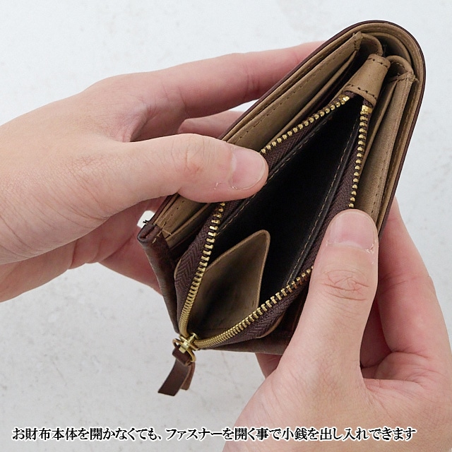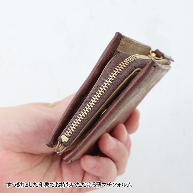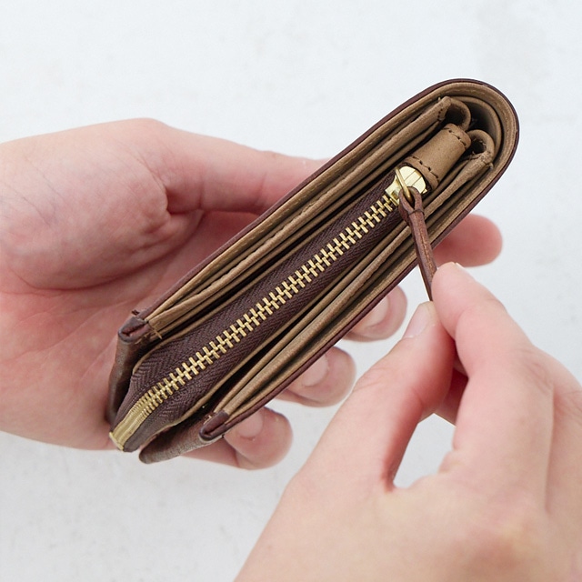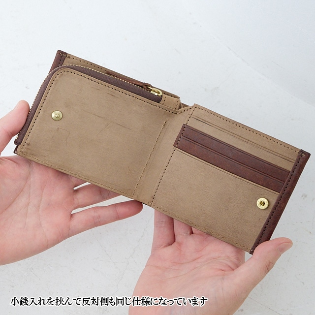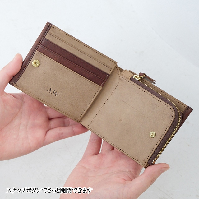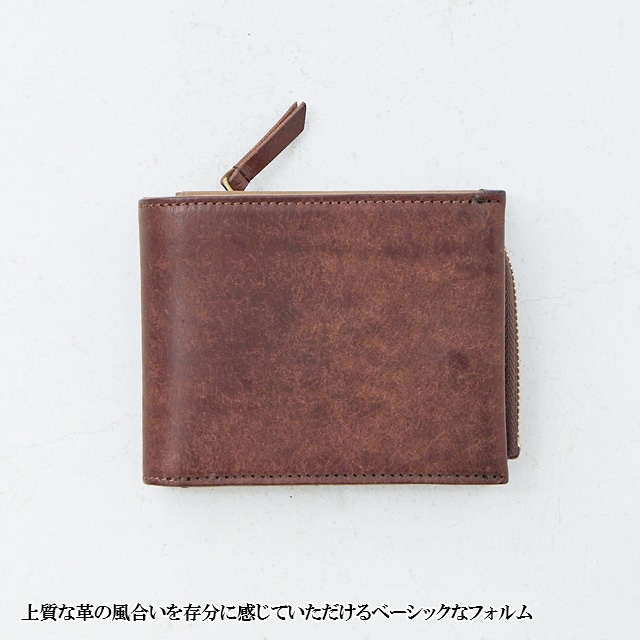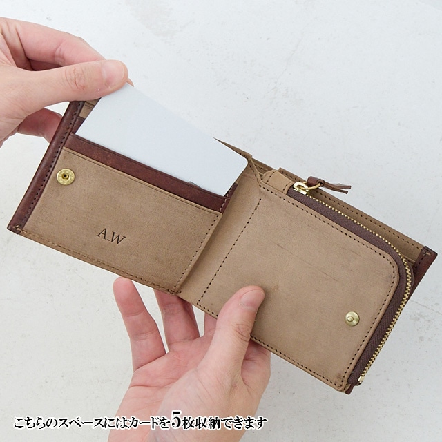 【A_W/アウ OFFICIAL SHOP】 革を育てる楽しみが増すプエブロレザーを使用 他の革に比べて格段に経年変化を感じられます おすすめポイント ・革好きな方におすすめしたい 手触りとエイジング感 表面は毛羽立たせるような加工がしてあり 使い込む程に、人の手の脂や水蒸気によって 他の革よりも素早く経年変化を していくというのが最大の特徴です。 ・スマートな印象で お持ちいただけるスリムなフォルム コンパクトな折財布+スリムな薄マチに 仕上げる事で、小さめのバッグやポケットにも 収納できるミニ財布に仕上がりました。 ・使い勝手にこだわった仕様に 小銭入れを挟んで、両サイドに 収納スペースがある為 自分好みに整理をしながら収納できます。 プエブロレザーは イタリア・トスカーナ州に拠点を置く バダラッシ・カルロ社を代表する革のひとつです。 バダラッシ・カルロ社は 世界的に有名なタンナーであり トスカーナ州に数十世紀以上に渡って 継承されてきた伝統的な技法を守り続けています。 和紙のように、ザラりとした独特な質感 油分の保湿性に優れるほか、通常の革よりも 時間をかけてゆっくりとオイルを 染み込ませていくので、オイルが抜けにくく 色や艶が非常に良い味を出してくれます。 ベーシックなデザインは メンズ・レディースを問わずにユニセックスで 使えるアイテムです。 プレゼントとしてもぴったりな A_Wオリジナルの箱と革の証明書付を つけて、お送りします
