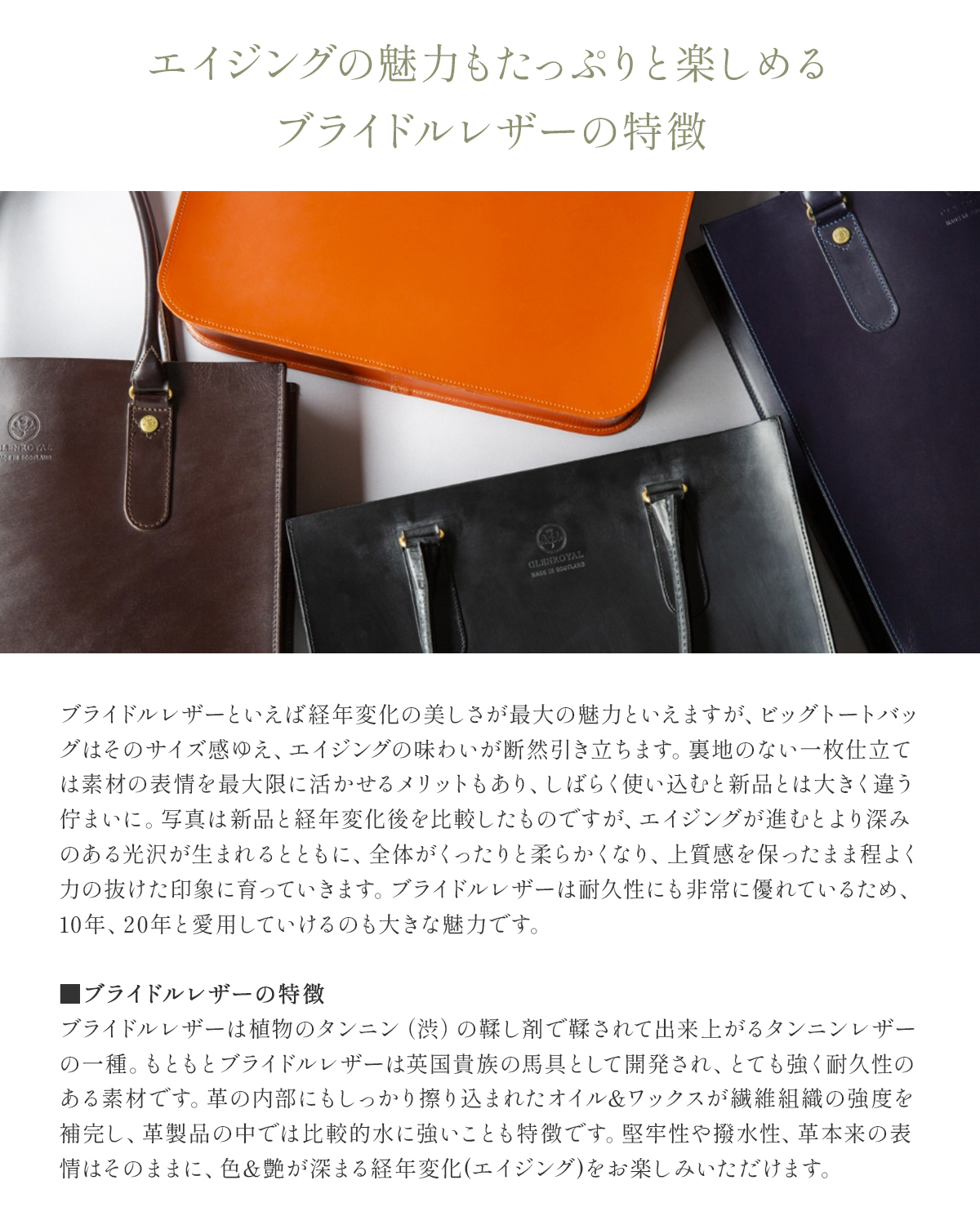 もともとブライドルレザーは英国貴族の馬具として開発され、とても強く耐久性のある素材です。