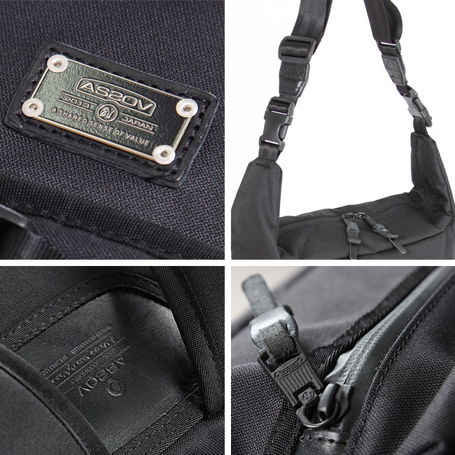 【本体素材】タテ・ヨコに350dの特殊ポリエステル糸を使用した、強度を誇るCORDURA 305d fabricを使用。ドビー織機で織り上げていますのでオックス、ツイル織りでは表現できない特徴的な生地目になっています。また、生地の裏面に通常より も2倍量のPU加工を施すことで、生地に程よいボリューム感を出しています。強度としなやかさが共存する、アッソブならではの生地です。 【レザー部分】使用しているレザーはナチュラル感にこだわり、オイルと染料を主として仕上げた素上げタイプのレザーになります。摩擦等により衣服への色落ち等が起こる可能性があります。