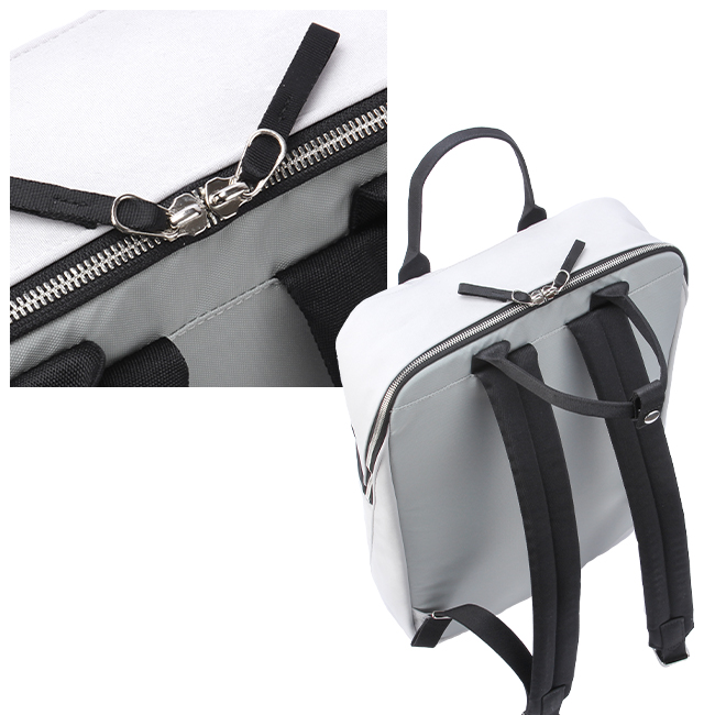 WE-ME独自のスライドオープン機構を備えたスクエアバックパック。