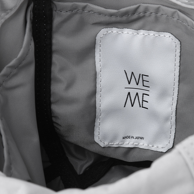 ナイロンのジャージー編みに塩縮加工を施した特殊な製法で、バッグに適した高品質ニット素材にアップデイト。しっかりと目を詰めた、優しく、あたたかな手触りの、WE-MEだけのオリジナルファブリック“W-01 SHRINK KNIT”が誕生。