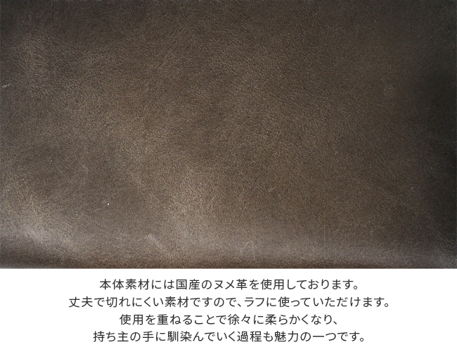 ・天然皮革を使用しているため、傷やシワ、血筋や色ムラなどが「個体差」として現れます。天然素材の特性としてご了承ください。