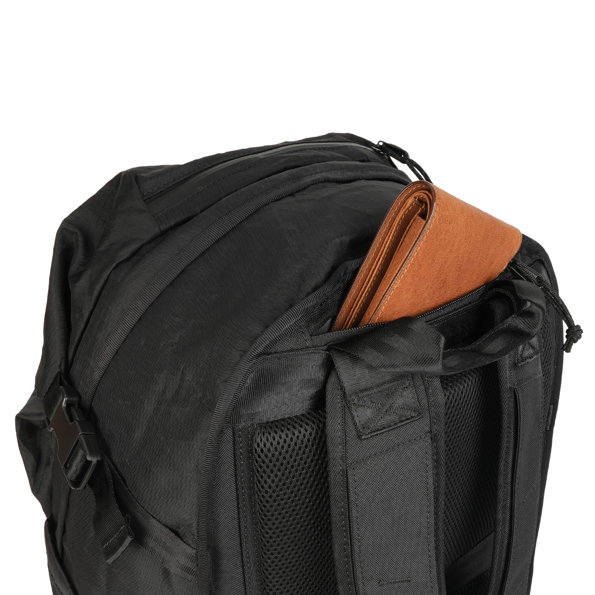 ・大きなメインポケットには日常的な道具から着替えなども合わせて収納可能。トップのベルトを調節すれば、内容量も拡張できる。