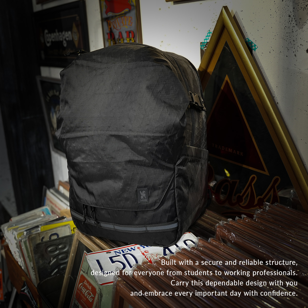 WE BUILD DURABLE PRODUCTS FOR WHEREVER YOU’RE HEADED. 革新性と耐久性に揺るぎないこだわりを持ち、 私たちは常に限界に挑戦し続け、 長持ちする目的を持ったプロダクトを作る。1995年[コロラド州ボルダー]比類なき強靭さを持ちながら、自転車に乗っていない時でも使えるバッグを作る為に、ミシンと少量のコーデュラ、トラックタープを用いて、最初のバッグが制作された。現在、CHROMEはアーバンサイクルカルチャーの盛んな都市「ポートランド」を拠点とするメッセンジャーバッグのブランドとなった。通勤、トラベル、写真といったジャンルへも視野を広げ、すべての都市生活者のためにタフで機能的なプロダクトを展開している。