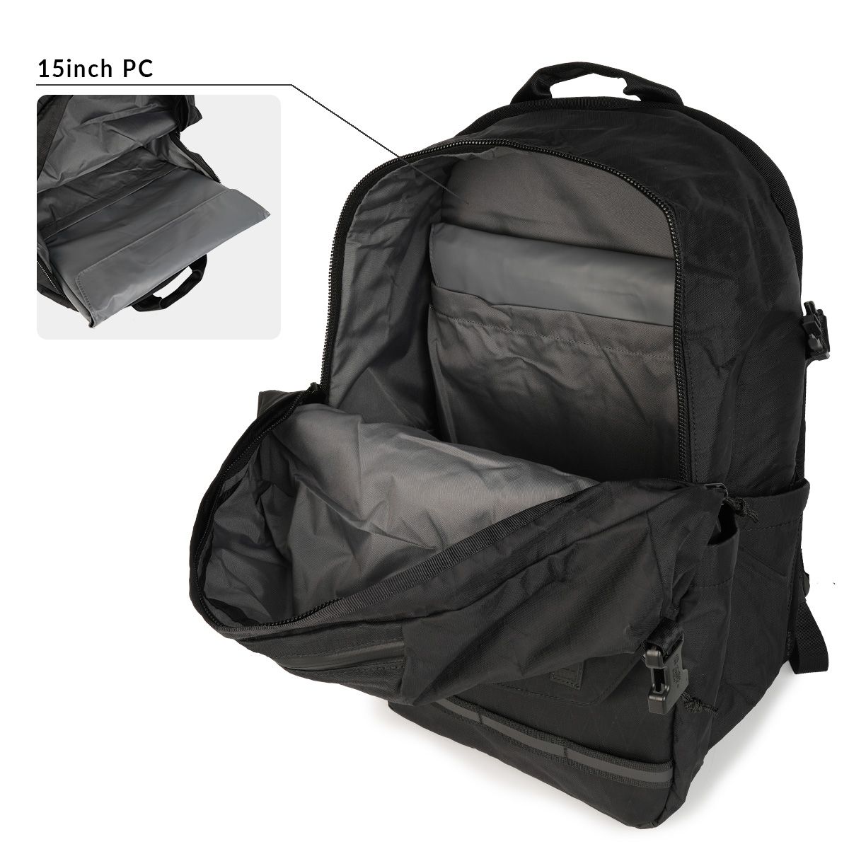 シンプルな見た目からには想像付かない収納力と拡張性を備えています。さらに、内臓のデュアルプロテクトラップトップスリーブが大事なパソコンやデバイスを突然の雨や衝撃から守ります。