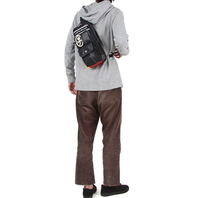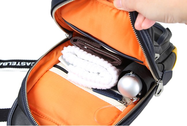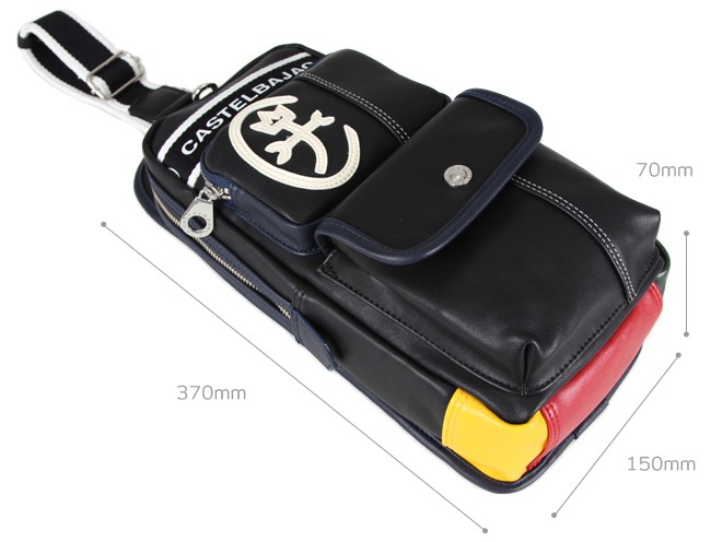 ベーシックな本体カラーに、ちらっとのぞくカステルバジャックらしい4原色がカラフルなカジュアルシリーズ。横型タイプのショルダーバッグです。1気室でメインルームはA4ファイルが縦に入るサイズ。長財布やスマートフォンなど、通勤・通学のアイテムの収納が可能です。底部にはトリコロールカラーを意識した3色使いでさりげなく目を引くデザイン。小物収納に便利な各サイズのポケットが装備された、普段使いに最適なショルダーバッグです。