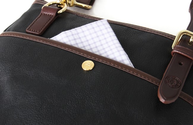 背面はホック留めポケットがあります。ハンカチなどの薄いアイテムの収納に最適です。