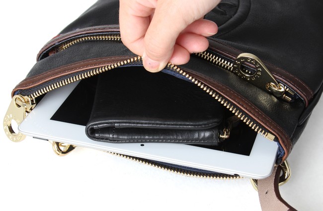 メインルームはiPadがジャストで入るサイズ。長財布や文庫本など、普段持ち歩くアイテムの収納に最適な容量です。