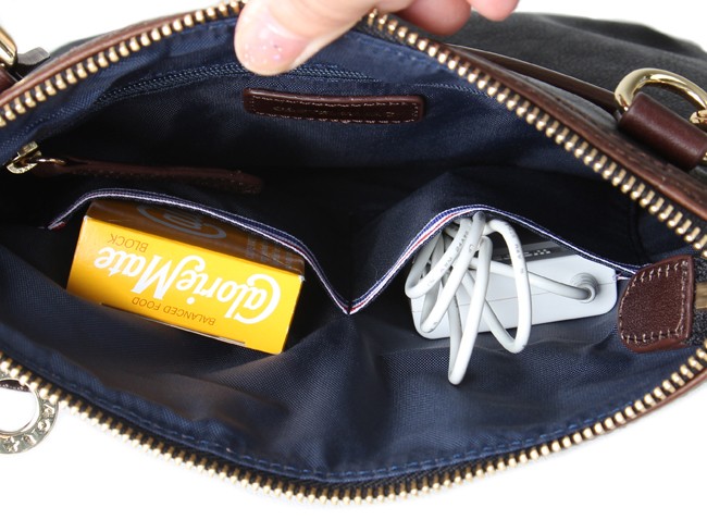 内部にはパスポートが入るサイズのファスナーポケットが装備。