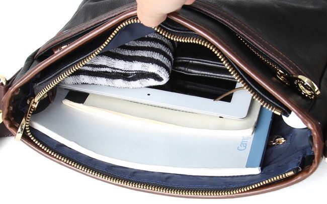 メインルームはA4ノートが入るサイズです。長財布やフェイスタオルなど、普段使うアイテムが入る容量です。