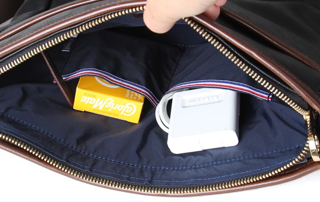 内部にはパスポートが入るサイズのファスナーポケットが装備。
