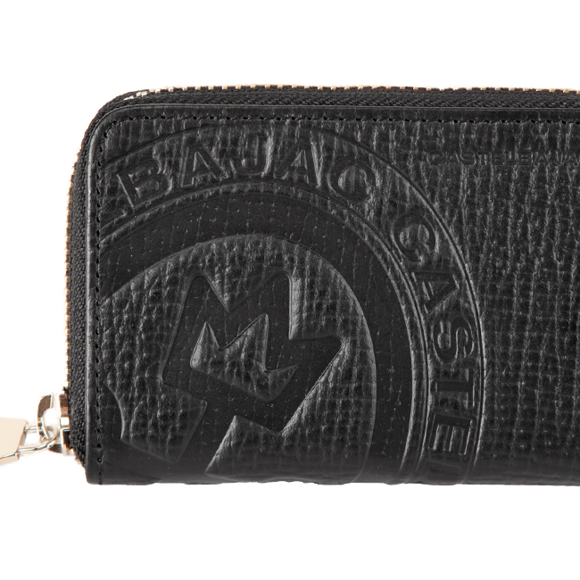 大きく箔押しされたカステルバジャックの家紋にトリコロールがアクセントのデザインで、メンズレディース問わず使用できるアイテムとなっています。