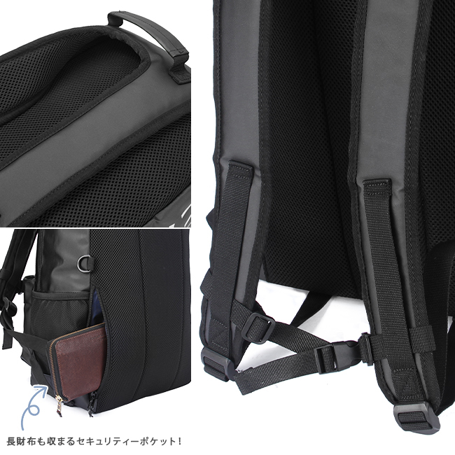 背面は、通気性の良いメッシュ素材&クッションパッド入りで体の負担を軽減。チェストベルト付きで、ズレを防止するので自転車通学にも最適です♪