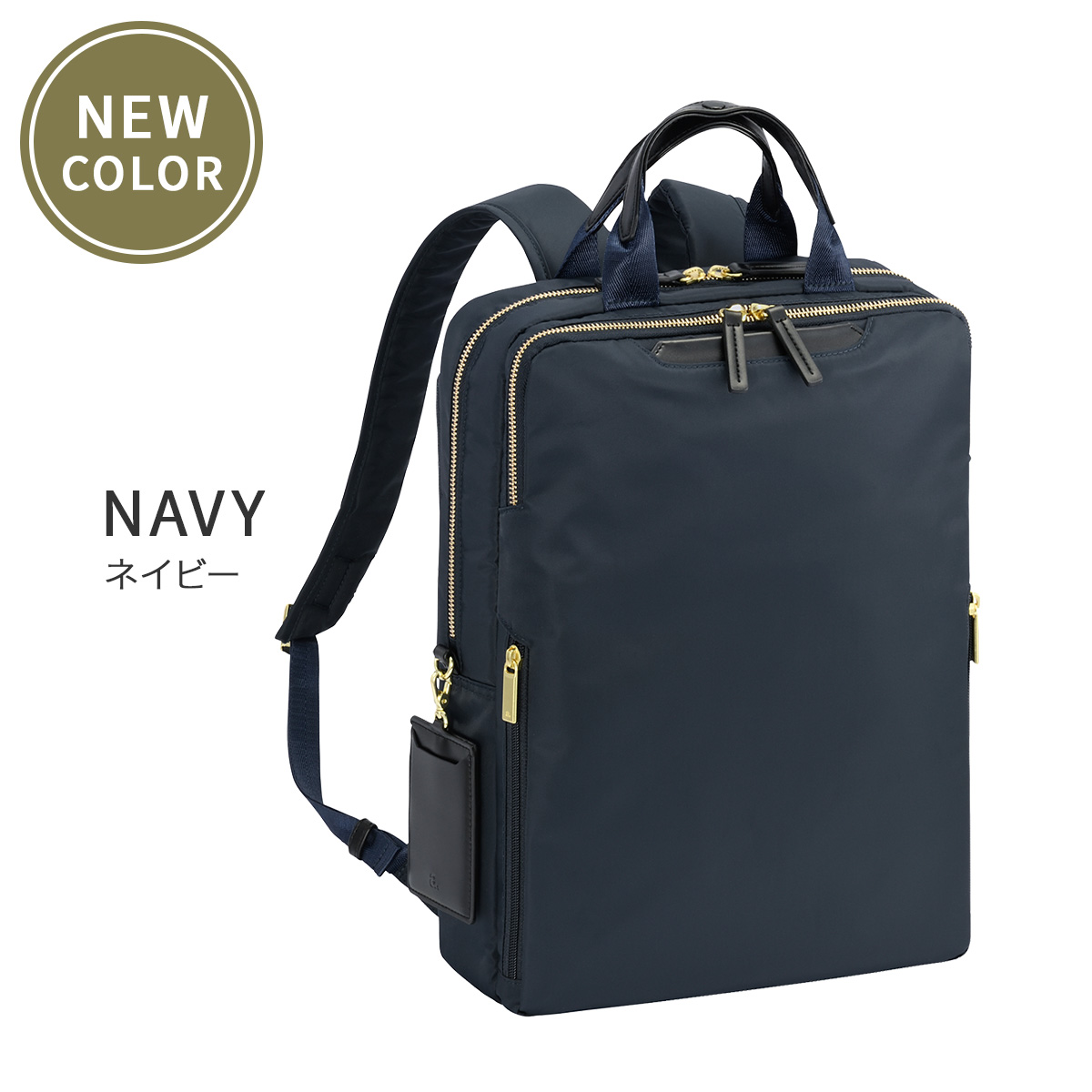 こちらは通勤に最適な、スクエア型のスリムで機能的なA4サイズ対応のビジネスリュック。14.0インチノートPC、A4ファイルが入るサイズ感。電車内などで前持ちした際も邪魔になりにくい、スリムでコンパクトなシルエットに仕上げました。