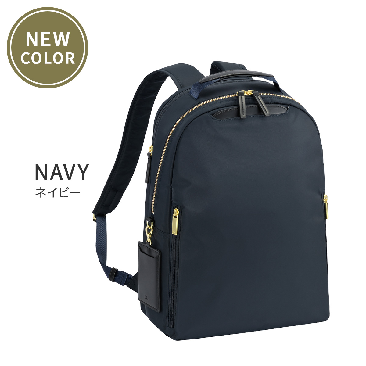 こちらはスリムできれいめな、デイパック型のA4サイズ対応のビジネスリュック。14.0インチノートPC、A4ファイルが入るサイズ感。電車内などで前持ちした際も邪魔になりにくい、スリムでコンパクトなシルエットに仕上げました。