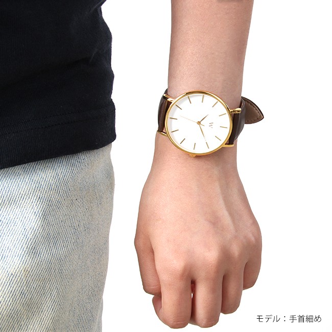 シンプルな文字盤と高級感のあるレザーバンドで、すっきりと洗練された見た目に まとまっています。