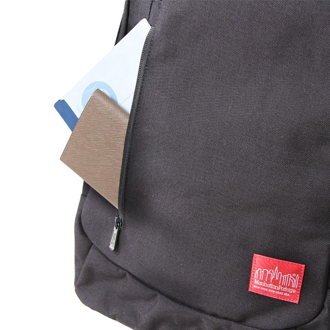 フロントのファスナーポケットにはA5ノートが収納可能です。パスケースなどの収納にも。
