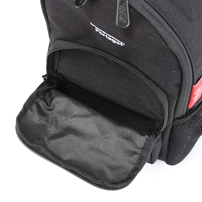 ・メッシュ仕様のサイドポケットやジッパー仕様のフロントポケットを完備