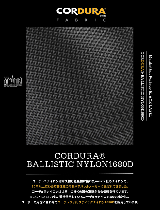・メインファブリックに CORDURA BALLISTIC NYLON を採用しています。