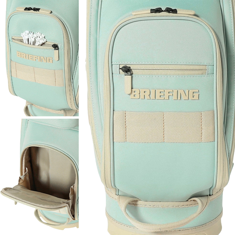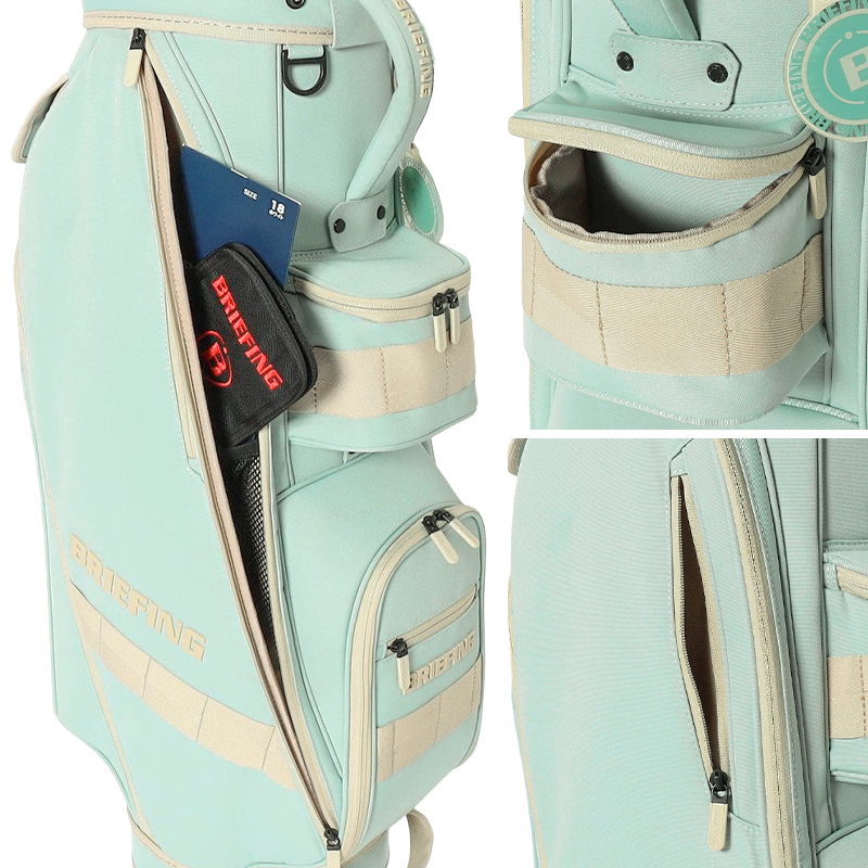 ・フロント上段にティーやボール用の立体ポケット、下段にゴルフボール1ダースが収まるポケットを完備。