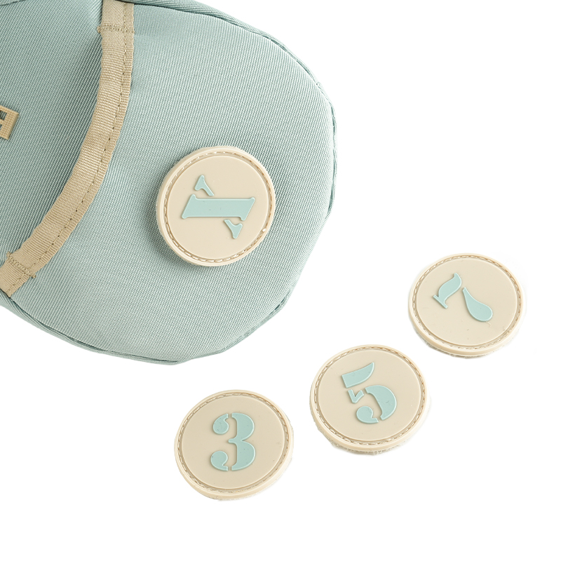 ・面ファスナーで付け替え可能な番手タグが付属し、クラブの識別も容易。