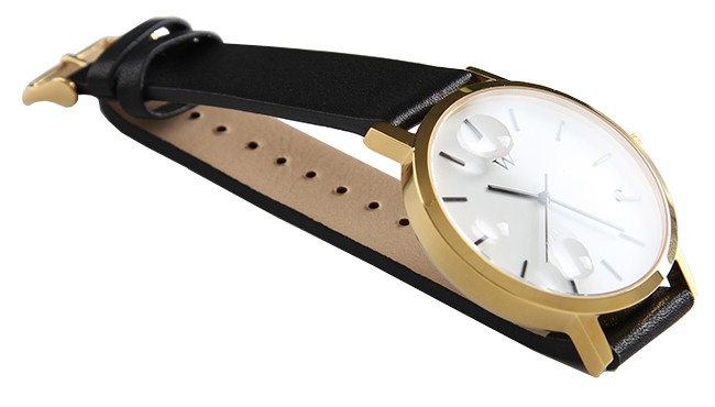 シンプルな文字盤と高級感のあるレザーバンドで、すっきりと洗練された見た目に まとまっています。