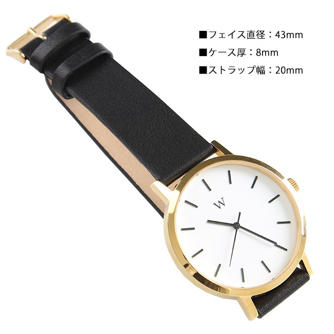 外寸 |ケース径:43mm、ケース厚さ:8mm、ストラップ幅:20mm