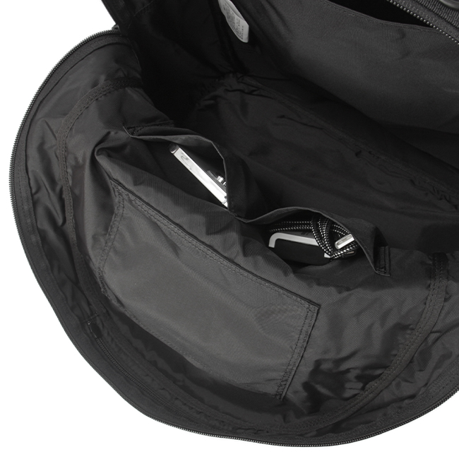 メイン収納には、前面に2つのポケット、背面に1つポケットがあります。小物類をしっかりと分けながらも、衣類、ポーチなど横幅のあるものも余裕を持って収納することができます。