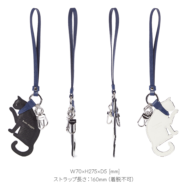 SHIPS CAT(船乗り猫)とは船上のネズミを駆除するために飼われていた猫のこと。猫は神秘的な能力で良天候へ変えてくれると信じられてきました。PELLE MORBIDAはそこにインスパイアを受け、SHIPS CATをモチーフにしたチャームをデザイン。チャームにはバッグに付けるためのレザーストラップとキーチャームとしても使えるナスカンを2つ付けた仕様になっています。