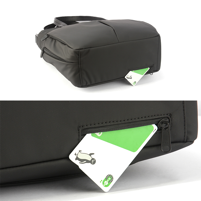 防水・防汚性能に優れたラバーライクなPU素材を採用。急な雨や雪の日でもケアしやすく扱いやすい素材です。マットな質感で、ビジネスシーンでも活用していただける上品さを持ち合わせています。