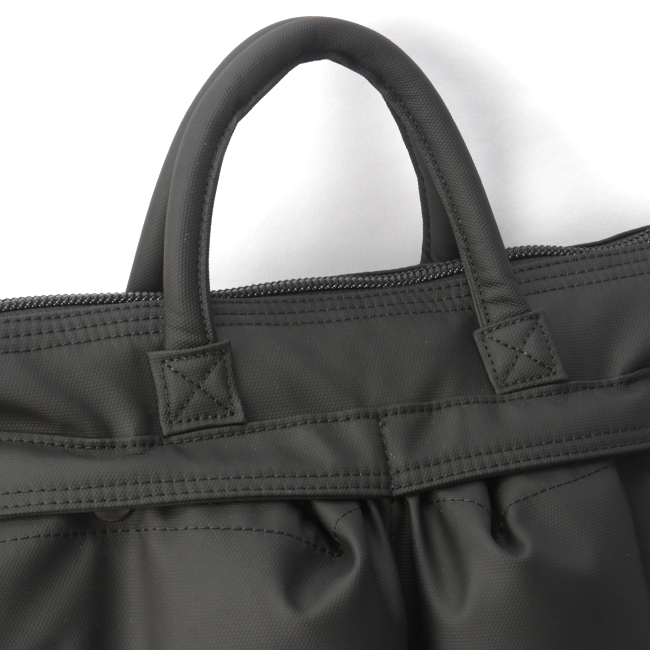 防水・防汚性能に優れたラバーライクなPU素材を採用。急な雨や雪の日でもケアしやすく扱いやすい素材です。マットな質感で、ビジネスシーンでも活用していただける上品さを持ち合わせています。