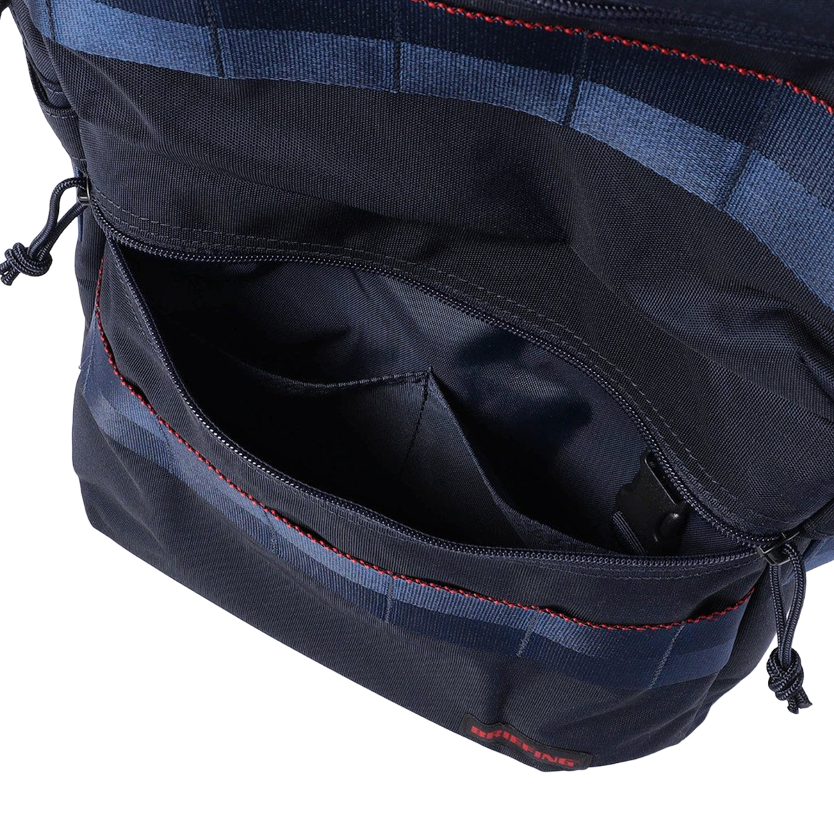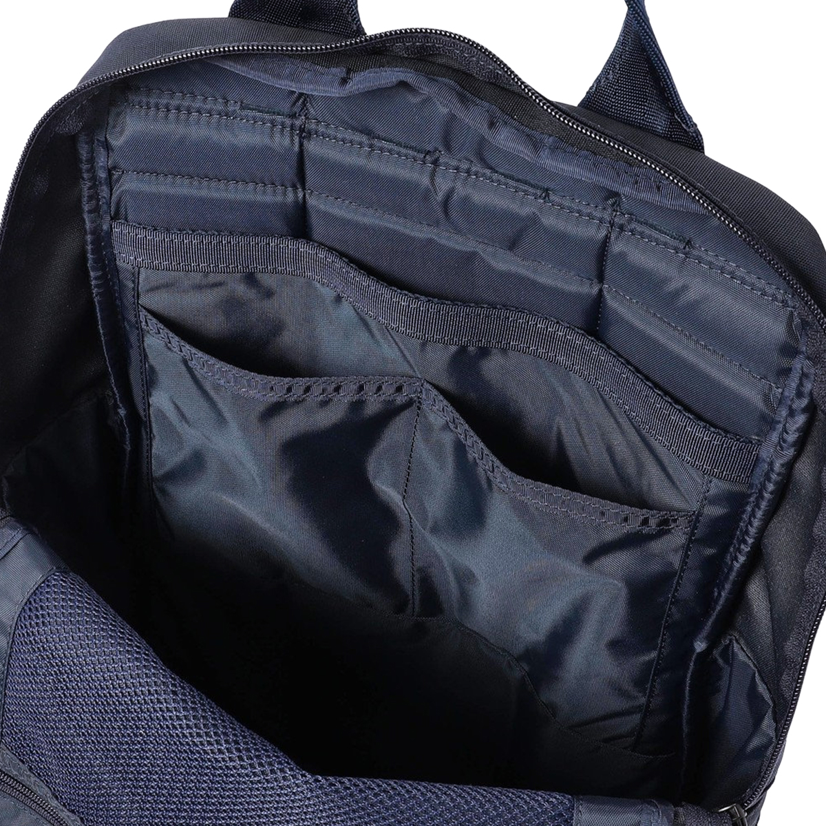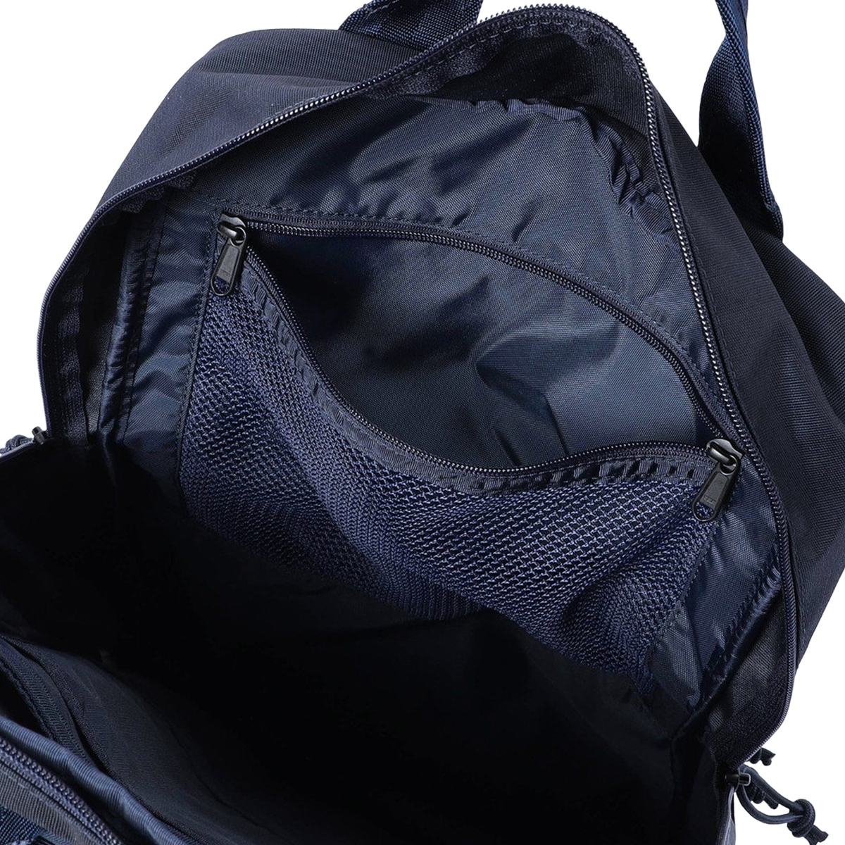 内装フロント側には視認性に優れたメッシュポケットを搭載。ファスナーを開けずに収納物を確認可能です。