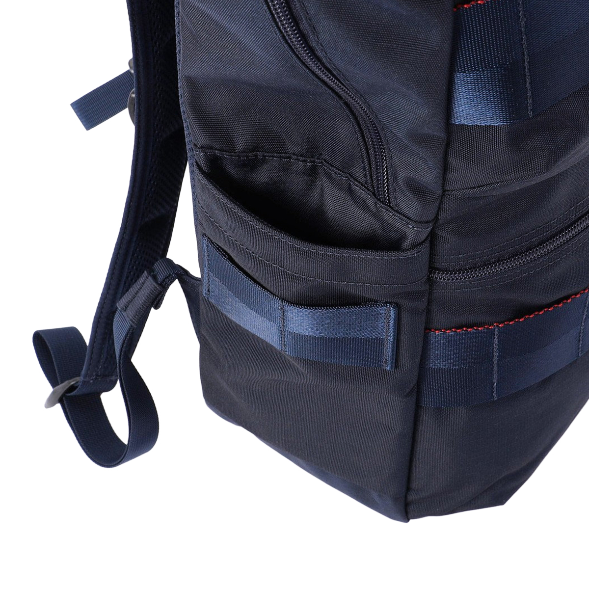 両サイドにペットボトルや折り畳み傘が収納可能なポケットを装備。都市での移動や通勤にも便利です。