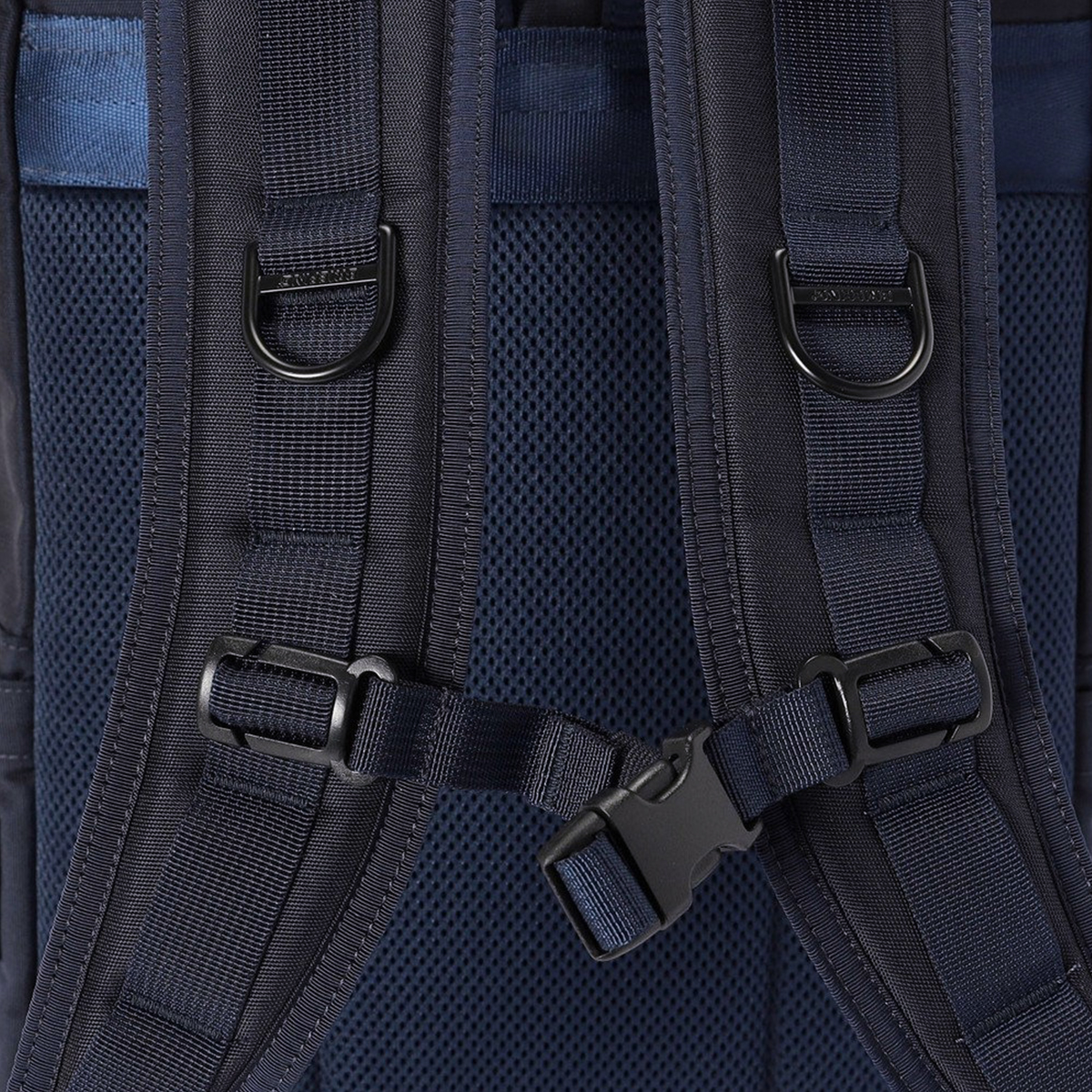 ・縦糸にリサイクルナイロン糸、緯糸に中空糸を使用したオリジナル素材をメインに使用。軽量でありながら、ハリコシのある素材感が特徴的。