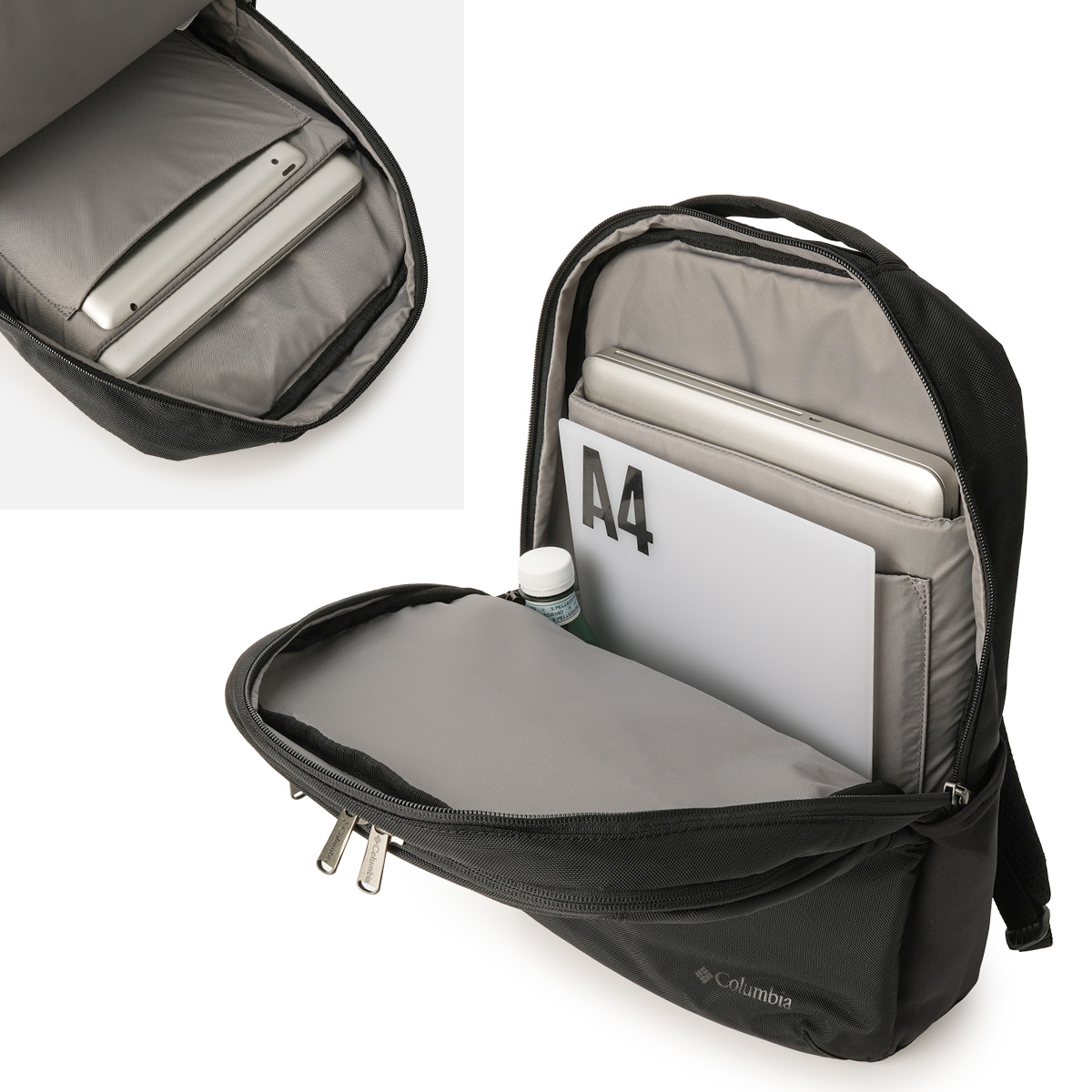 ・メインコンパートメント:背面側にPCスリーブ(13インチ対応)とタブレットスリーブ