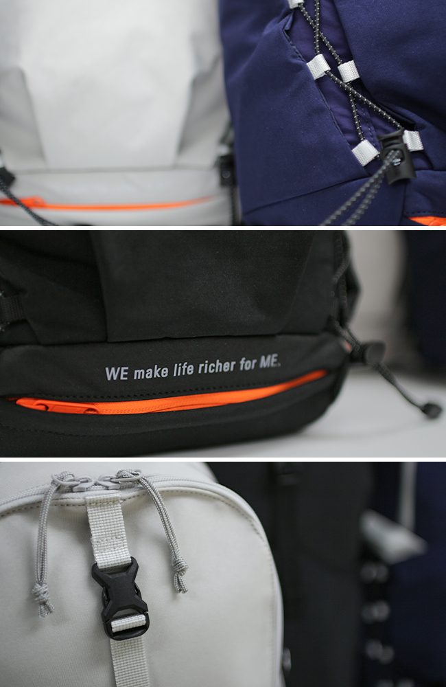 WE-ME正規販売店|フロントのポケットには、バックルベルトやコードを調節しジャケットやヘルメットといった大物類も収納可能
