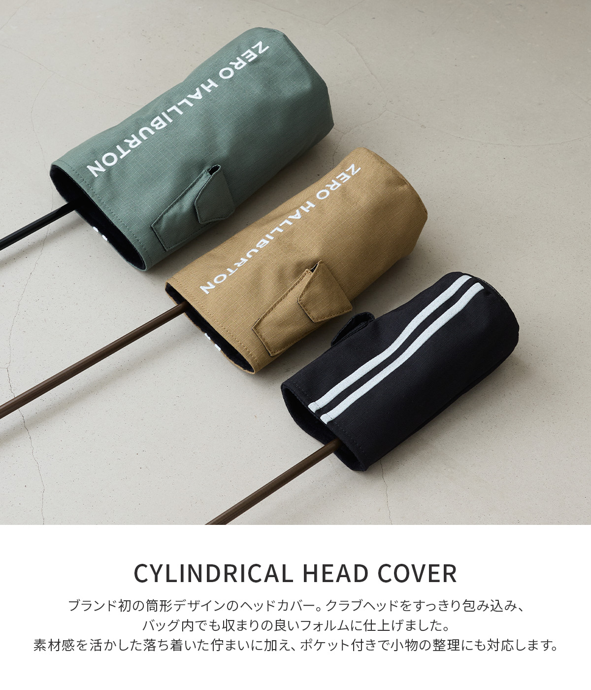 ブランド初となる筒形デザインを採用し、クラブヘッドをすっきりと包み込むフォルムでバッグ内でも収まりの良い設計。