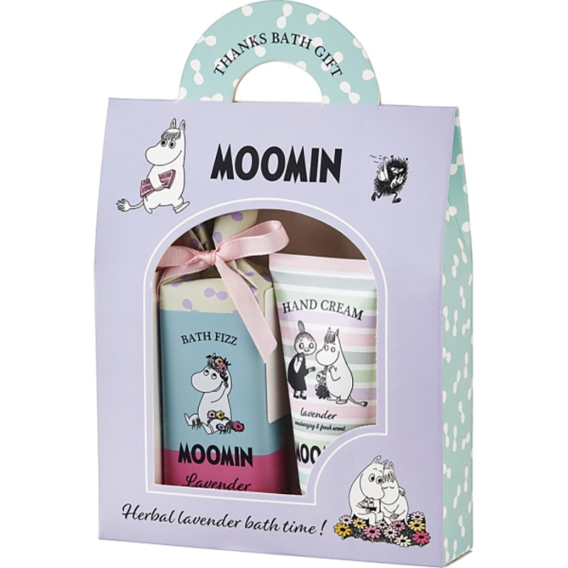 発泡タイプの入浴料とシアバター、ホホバオイル配合のハンドクリームのセット。ムーミン谷の仲間とリラックスタイムをお届けします。ラベンダーの香り